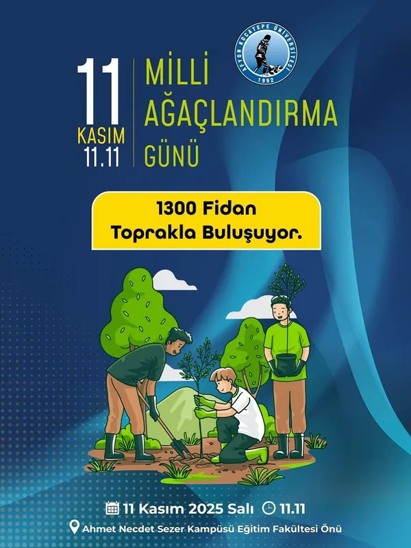 Afyon Kocatepe Üniversitesi (AKÜ), 11 Kasım Milli Ağaçlandırma Günü kapsamında anlamlı bir etkinliğe ev sahipliği yaptı. Eğitim Fakültesi önünde düzenlenen fidan dikim etkinliği ile üniversite yerleşkesi daha yeşil bir görünüme kavuştu.