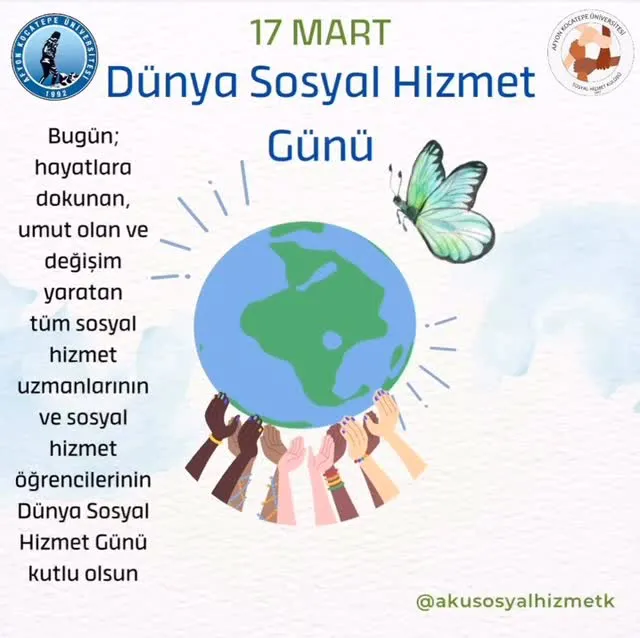 Afyon Kocatepe Üniversitesi, 17 Mart Salı günü kutlanan Dünya Sosyal Hizmet Günü dolayısıyla mesleğin önemine ve toplumsal misyonuna dikkat çeken bir açıklama yayımladı. Paylaşılan mesajda, sosyal hizmet uzmanlarının toplumdaki rolüne ve insan odaklı çalışmalarının değişim yaratan etkisine vurgu yapıldı.