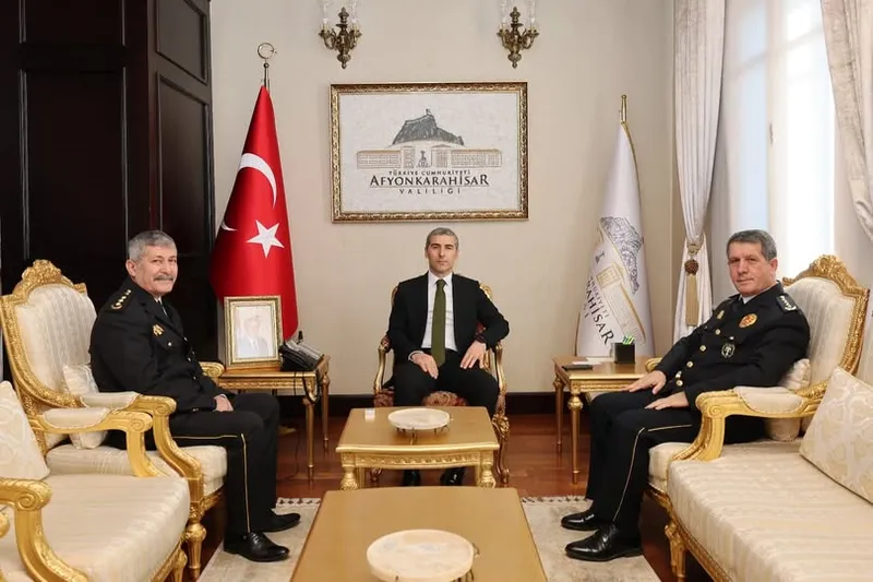 Afyonkarahisar Polis Meslek Eğitim Merkezi (POMEM) Müdürü Üzeyir Taşdelen ve Müdür Yardımcısı Sadi Erkuni, Vali Dr. Naci Aktaş'ı makamında ziyaret ederek hayırlı olsun dileklerini iletti.