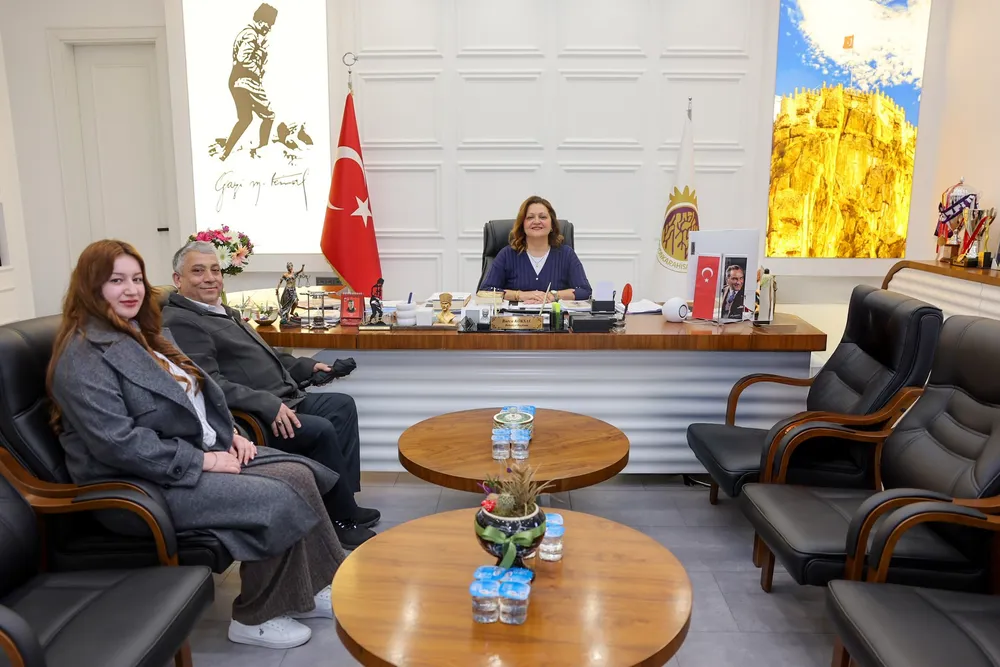 Dinar Belediye Başkanı Veysel Topçu, Cumhuriyet Halk Partisi İl Başkanı Hasan Karadeniz ve Merkez İlçe Başkanı Murat Albayrak ile birlikte Afyonkarahisar Belediye Başkanı Burcu Köksal'ı makamında ziyaret etti.