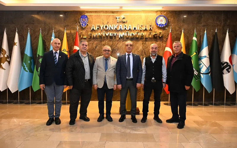 Ege Etkinlik Federasyonu ve Afyonkarahisar Düğün Salonları Dernek Başkanı Erhan Yücel, beraberindeki yönetim kurulu üyeleriyle birlikte Afyonkarahisar İl Emniyet Müdürü Ahmet Birtan Erol’u makamında ziyaret etti.
