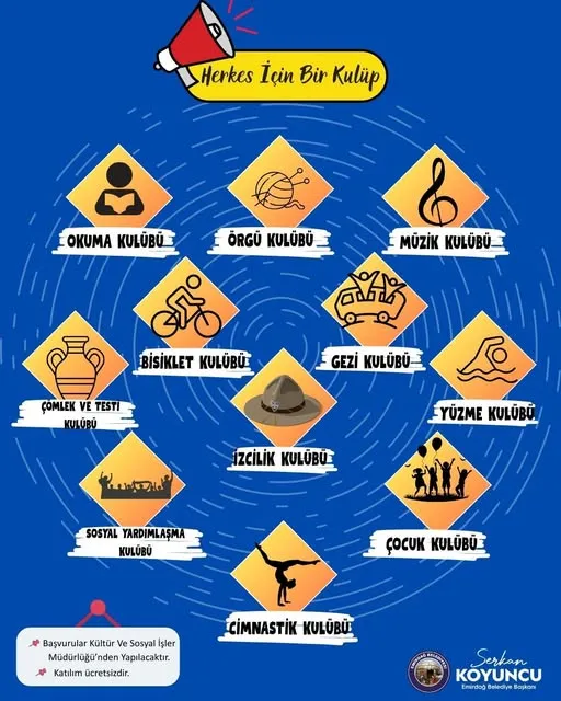 Emirdağ Belediyesi, sosyal belediyecilik anlayışı doğrultusunda, tüm vatandaşları ilgi duydukları kulüp çalışmalarına katılmaya davet ediyor.