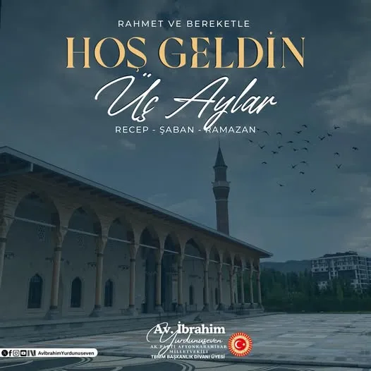 AK Parti Afyonkarahisar Milletvekili İbrahim Yurdunuseven, Recep, Şaban ve Ramazan aylarını kapsayan mübarek Üç Aylar'ın başlaması dolayısıyla bir mesaj yayımladı. Yurdunuseven, bu özel zaman diliminin tüm İslam alemine hayırlar getirmesini diledi.