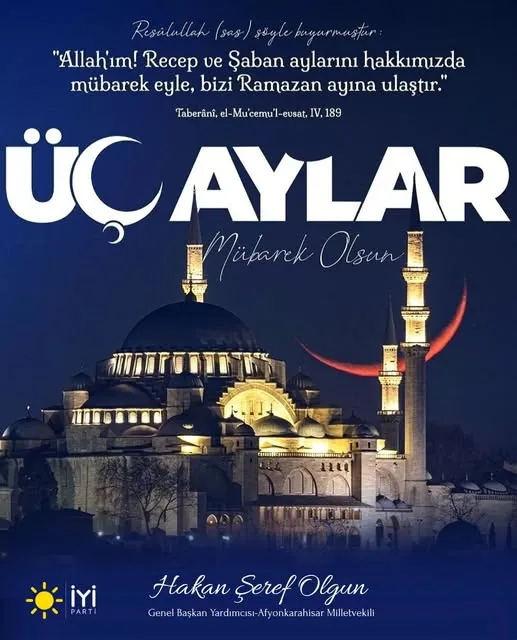 İYİ Partili siyasetçi, bu önemli dönemin hem Türkiye hem de tüm İslam alemi için hayırlara vesile olmasını diledi. Olgun, mesajını şu sözlerle tamamladı: "Bu mübarek zaman diliminin ülkemize, milletimize ve tüm İslam âlemine hayırlar getirmesini diliyorum."
