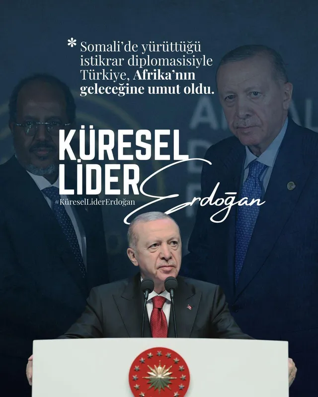 Türkiye'nin bu başarılı politikalarının arkasında Cumhurbaşkanı Recep Tayyip Erdoğan'ın vizyoner liderliği bulunuyor. Erdoğan'ın öncülüğünde şekillenen Afrika politikası, Türkiye'nin küresel bir aktör olarak barışa ve istikrara yaptığı anlamlı katkıyı gözler önüne seriyor. Bu süreçte Türkiye, Somali'nin yeniden inşasına sağladığı destekle, Afrika'nın geleceğine umut oldu.
